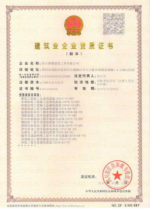 四川騰耀建筑工程有限公司(以下簡稱:四川騰耀)成立于2010年1月,注冊資金1168萬元,員工98人,其中各類注冊工程師62人(次),含高級職稱人員20人中級職稱人員42人,各類評標專家15人,既有較強的專業知識,又有豐富的實踐經驗;擁有各類設備200余臺(套)。